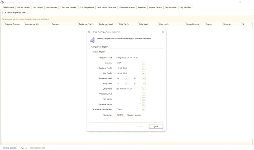 Dilerseniz bir gün önceden kurguyu hazırlayıp sistemi programlayabilirsiniz. Sizin belirleyeceğiniz tarih ve saat aralığı geldiğinde sistem otomatik olarak aramalara başlayıp ulaşılan kişilere mesajınızı dinletecektir.