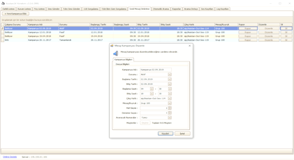 Kaç kişiye ulaşıp sesli mesajı dinletip Agent’lara aktarıldığını,