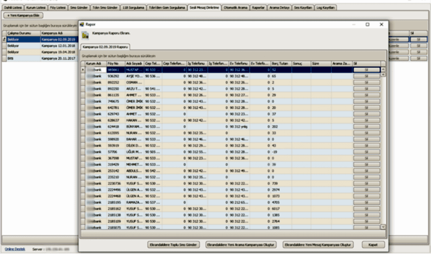 Kaç kişiye ulaşıp sesli mesajı dinletip Agent’lara aktarıldığını,
